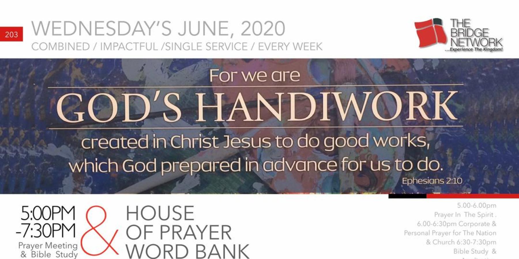 "For we are God's handiwork, created in Christ Jesus to do good works, which God prepared in advance for us to do"...... Ephesians 2:10 "God is the Master Artist. Never forget that You are a masterpiece"......Jackie Trottmann For more on the above topic, please join us online at our House Of Prayer & Word Bank meetings for the month of June every Wednesdays - 10th, 17th & 24th June, 2020 starting by 5:00pm prompt Looking forward to your participation a...